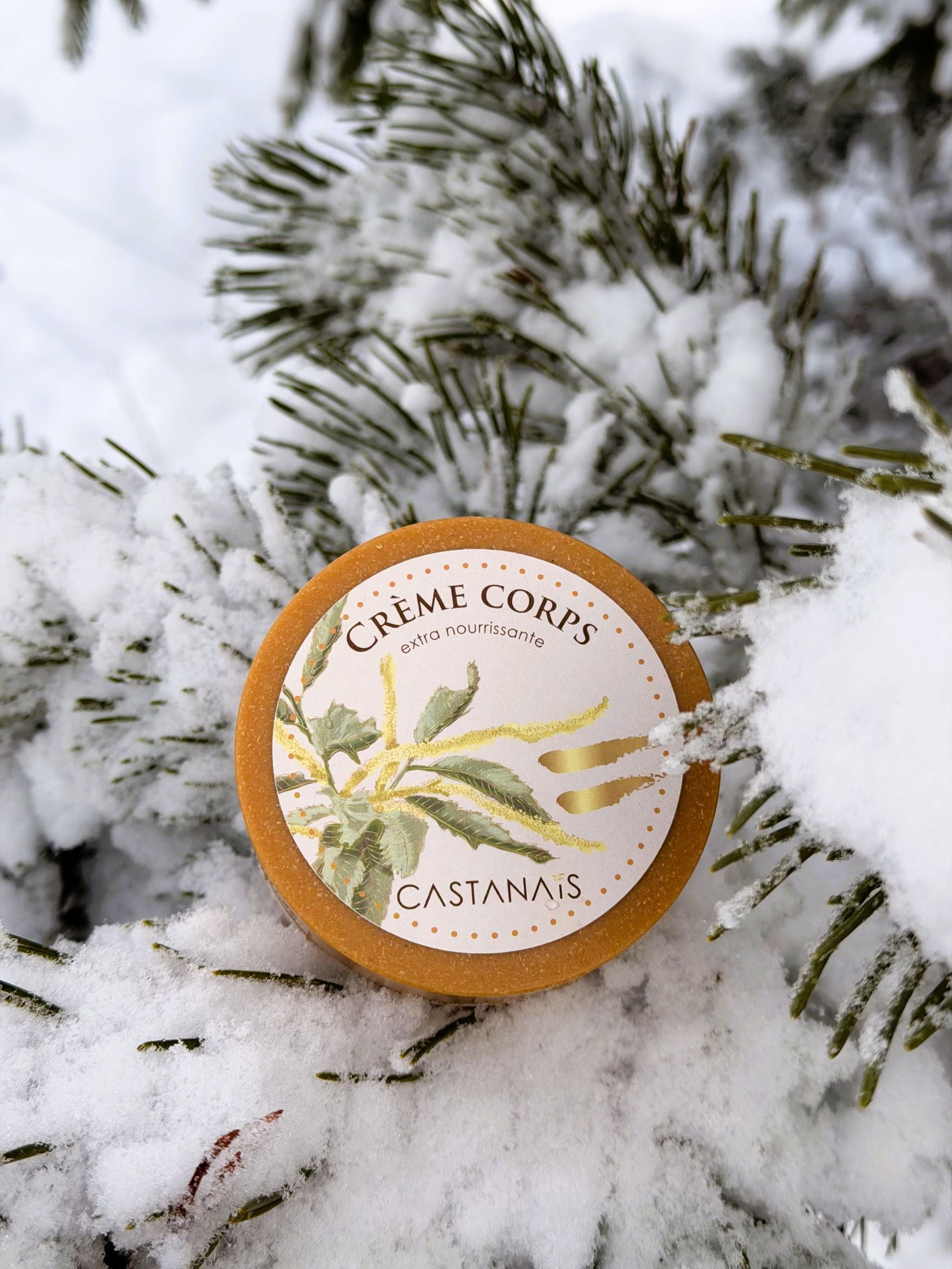 Nous concevons des soins visage et corps haut de gamme à base de farine de châtaigne AOP, un ingrédient que nous produisons, riche en bienfaits et encore jamais exploité dans l’univers de la cosmétique.